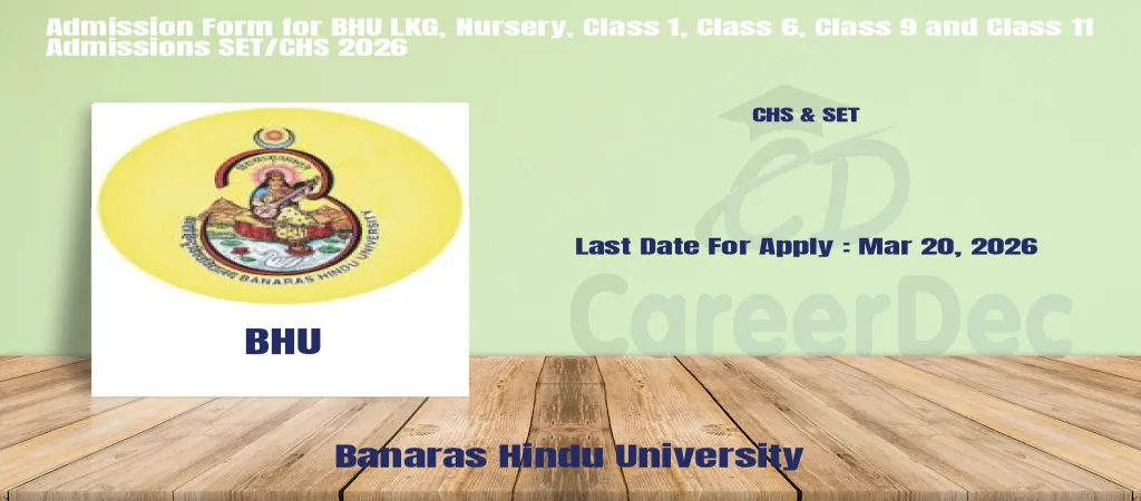 The online registration has been released along with Banaras Hindu University ( BHU ) CHS & SET Notification 2026. Aspiring candidates of Banaras Hindu University ( BHU ) CHS & SET apply online from Feb 20, 2026 to Mar 20, 2026. As per the new vacancy 2026, the Banaras Hindu University ( BHU ) CHS & SET Exam Dates have been updated below.