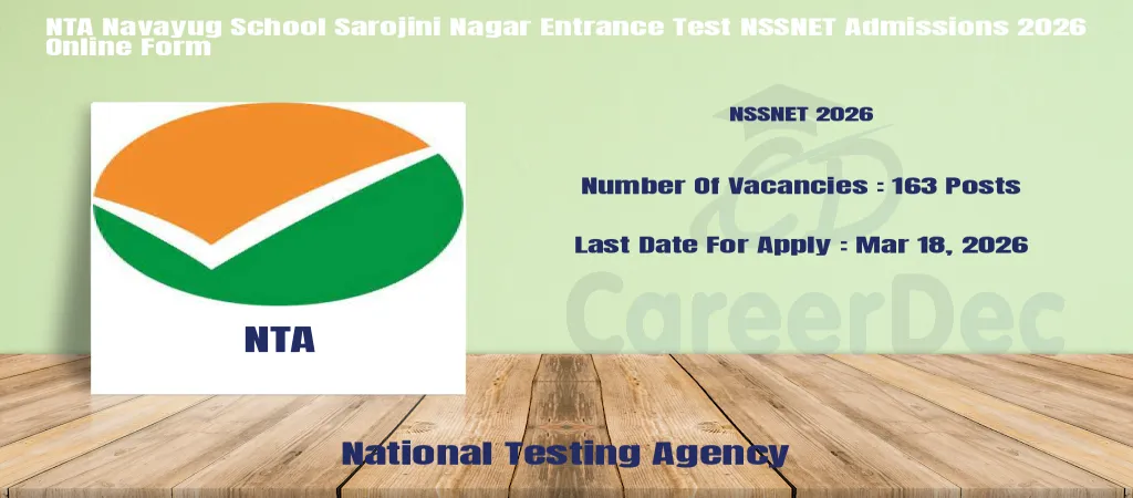 The online registration has been released along with National Testing Agency ( NTA ) NSSNET 2026 Notification 2026. Aspiring candidates of National Testing Agency ( NTA ) NSSNET 2026 apply online from Feb 25, 2026 to Mar 18, 2026. As per the new vacancy 2026, the National Testing Agency ( NTA ) NSSNET 2026 Exam Dates have been updated below.