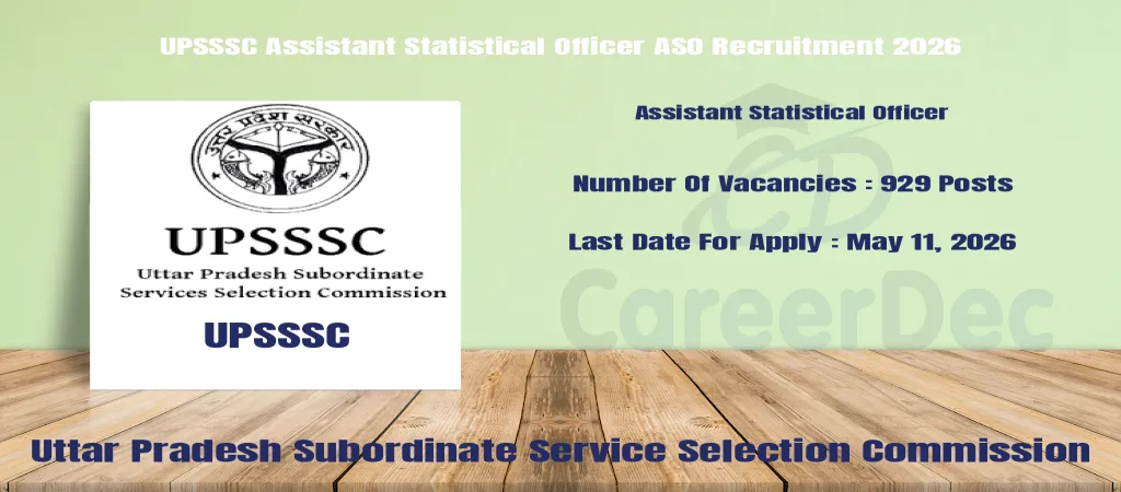 The Uttar Pradesh Subordinate Service Selection Commission ( UPSSSC ) Assistant Statistical Officer 2026 Exam welcomed applications for eligible candidates, with the application window open from Apr 21, 2026 to May 11, 2026. The online application mode of the exam aimed to fill multiple Assistant Statistical Officer vacancies. Aspirants were advised to carefully review the official advertisement for essential details such as eligibility criteria, age limits, selection process, syllabus, pay scale, and other pertinent information before applying.
